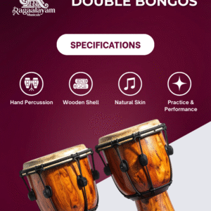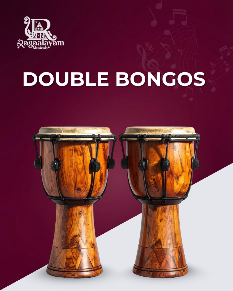 The Double Bongos set is a pair of small, hand-played drums traditionally used in Latin and global music genres. Each drum has a different size head, offering contrasting tones that complement one another when played together. These bongos deliver crisp highs and warm mids, making them ideal for rhythm patterns, improvisation, and accompaniment.