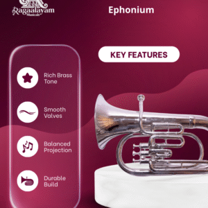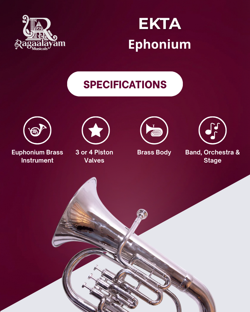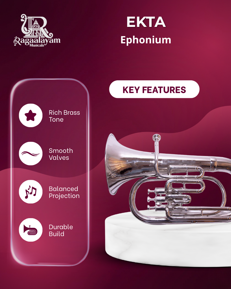 The Ekta Brass Euphonium is a classic brass wind instrument pitched in B♭, known for its warm, lyrical sound and smooth valve action. As a tenor-voiced member of the brass family, the euphonium’s wide conical bore produces a richer lower register than instruments like the trumpet, making it a key voice in brass and concert bands.
