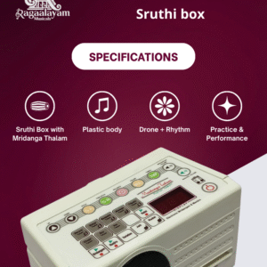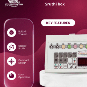 The Mridanga Thalam Sruthi Box is a modern electronic shruthi/drone instrument that combines stable pitch reference tones with integrated rhythmic tala accompaniment. Designed to support Indian classical music practice, it provides structured drone output alongside rhythmic cycles to assist learners in synchronizing melody with rhythm.