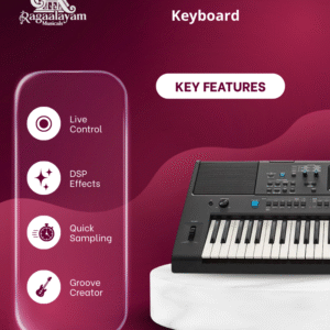 This model features an extensive library of instrument voices and accompaniment styles, enabling players to explore multiple genres, including Indian and Western music. Performance-oriented features such as real-time control knobs and groove-based rhythm tools make it suitable for practice, composition, and small live setups. Lightweight and portable, the PSR-E473 works well for home use, music classes, and stage-ready practice sessions.